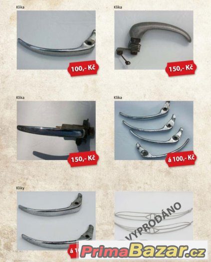 Starší náhradní díly na Renault 4CV. Seznam viz obrázky, nebo možno zaslat na email. Tel.: +420 774 751 375, ..xxxx...historic-cars.cz.
