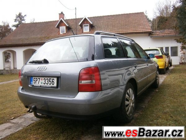 Audi A4 1,9TDi Avant, rok výroby 2000, STK do 6/2016. 120.000 Kč. ABS, centrál, automatická klimatizace, el. okna a zrcátka, palubní počítač. Tažné zařízení, interiér látka.... sportovní volant, CD měnič v kufru - z levé strany, orig. subwoofer Audi pod CD měničem.. Orig. xenony, čirá světla přední, STK 06/2016. 95.000 Kč.