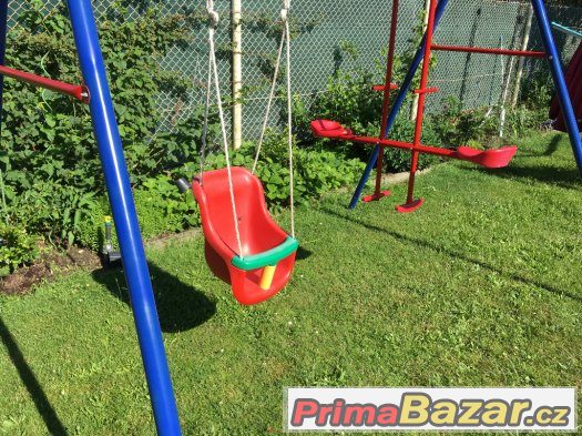 Prodám zahradní sestavu houpaček - houpačka zn. Kettler, zahradní houpačky jsou kovové, jedná se o dvoumístnou talířovou houpačku a jedoduchou houpačku, která je nejdříve pro nejmenší dítě - poté lze odendat hrazdička a použít jako houpačka pro větší děti. V pěkném stavu, k zabudování do země se používají dráty do betonu, které se připevní ke 4 nohám samotné houpačky. Na stránkách firmy kettler lze dokoupit libovolné příslušenství a sestavu tak rozšířit. Cena za komplet 3500kč.