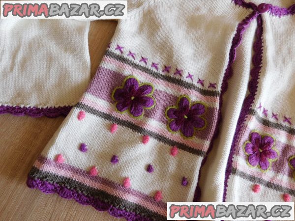 krásný dívčí svetřík sna jeden knoflíček u krku ..... velice málo nošený, zcela bez vady ....... velikost 86 ... příjemný materiál ...... 100%bavlna ....... myslím si že bude ještě nový,ale zaručit nemohu .......