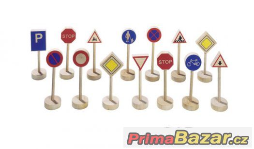 Dopravní značení Značky. Skvělá pomůcka nejen do školek. Výborná příprava před návštěvou dětského hřiště. Děti se mohou naučit základní pravidla silničního provozu díky dřevěným značkám.