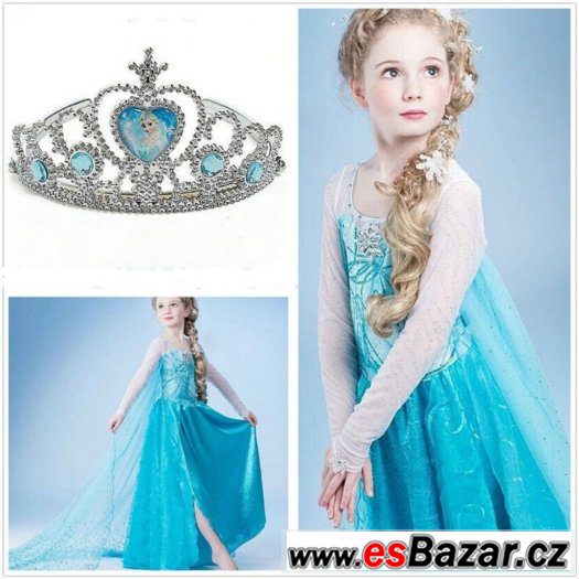Set 2 - FROZEN-Ledové království. (šaty + korunka) Různé velikosti šatů.od 3. až do 8.let(100.,110.,120.,130.,140). Velikost 120, 140 ihned k dispozici. Zaslání poštou je samozřejmě možné. Na dotazy odpovím téměř hned.