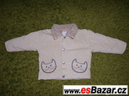 Nabízím manšestrový zateplený kojenecký kabátek, podšitý teplým flanelem, kolem krku a do půlky zad kožíšek. D = 34cm, š = 32cm, 32cm. Nošený, ale stále parádní.