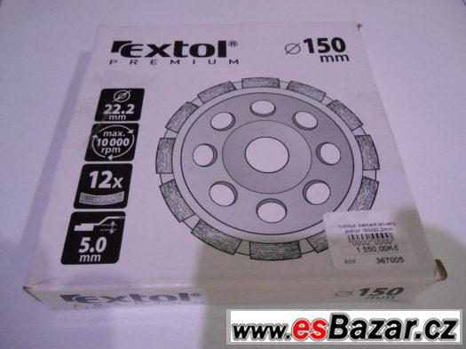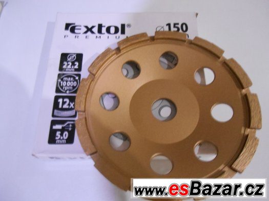 Kotouč diamantový brusný jednořadý, 150x22,2mm, výška segmentů 5mm, počet segmentů 12, max. otáčky 10000/min. EXTOL PREMIUM.