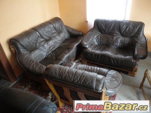 Pravá hnědá kůže, příjemná na dotyk. Snadná údržba. Kostra z dubového dřeva. Rozměry: délka 2m/1,6m/1m. Nepoškozená. Dovoz Německo. mail:sulc54..xx..xx@xx...xx...seznam.cz.Také nabízíme vitrínu, komodu a rustikální kuchyně.