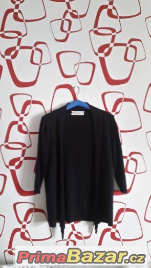 Cardigan / delsi svetrik z tenci upletoviny, ZARA, velikost M (delka rameno rantl 75, delka az k cipu 79 cm). Parkrat vzaty, syta cerna barva. Email: lucie_vomocilova@seznam.cz