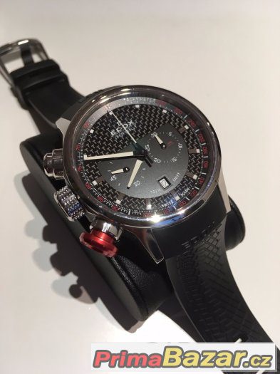 swis made, pořizovací cena 40700, chronograf, datumovka, certifikace, pásek kaučukový + náhradní pásek + osičky, sklo safírové, průměr 45 mm, druh sportovní/elegantní, pohon bateriový, nošené, nezničené špičkové hodinky, kompletní krabička