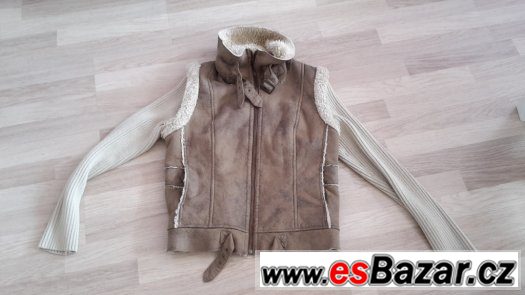 Nošená bundička, rukávy uplet jinak broušená kuže ....perfect stavík! délka 58cm, šířka v pruramcích 53cm, rukáv od krku 75cm .... uvnitř bundy kožíšek :-) preferuji osobní odber po Praze 4, č.m 733 117 599 poštovné 57kč