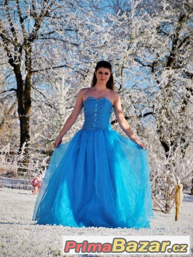 Krásné modré šaty zdobené kamínky. Zakoupené v Českých Budějovicích kde dělají každý šat, jako originál. Velikost 36-38. K šatům přidám spodničku se šperky (korunka, náhrdelník a naušnice). Šaty byly použité jen na maturitní ples a focení. Cenu nabídněte. Kontaktní e-mail - vencelovaav..xx..xx@xx...xx...gmail.com, tel. kontakt - 720964189