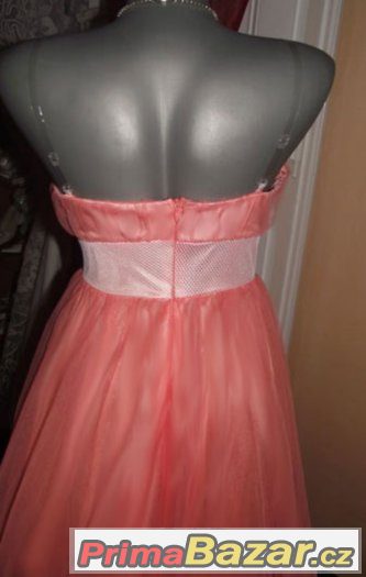 Překrásné šatičky, vršek má polstrované košíčky a vnitřní úchytky na průsvitná ramínka-jsou součástí, zadní zip,jsou pružné, spodní dvojitá jemná rozevlátá tylová matná sukýnka.