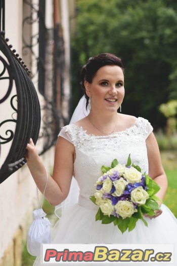 Nabízím k prodeji svatební šaty,vrchní část styl korzet zdobená kamínky, vzadu na šněrování.Měla jsem je upravené na svou velikost, doporučuji tedy vyzkoušet. Cena 1500,- V případě zájmu pište na e-mail: juricova01..xxxx...
