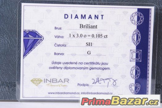 CERTIFIKÁTY OD DIAMANTŮ PŘILOŽENY!LZE TO KOUPIT SAMOSTATNĚ NEBO JAKO SOUPRAVU.CENA SOUPRAVY CELKEM 10000 KČ.PODÍVEJTE SE NA DALŠÍ MOJI NABÍDKU!