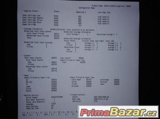 Stav tisku a tonerů viz foto.Cena 3200kč i dobírkou+ 300kč.Tel.: 604566597 Brno