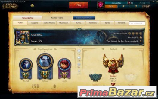 LoL účet, 30 lvl Gold 3, EUNE