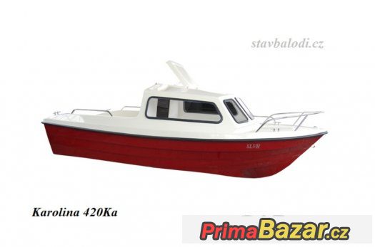 Motorový kajutový nový člun Karolina 420. Pohodlný člun pro rybaření a rekreaci na řekách i mořském pobřeží.