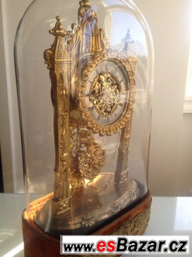 hodiny s hracim strojem pod sklenenym poklopem biedermayer