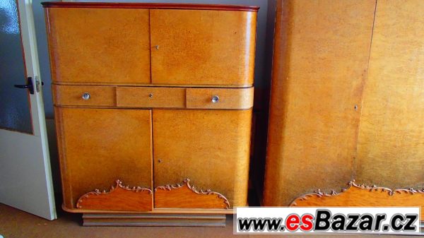 Nabízím zachovalou a velmi pěknou ložnici z období 1. republiky, z kvalitního dřeva - kanadská bříza, se zdobením. Sestava obsahuje: dvojpostel s nočními stolky, toaletní stolek/toaletku se zrcadlem, šatní skříň 3-dílnou a prádelník. Nábytek je používaný, po prarodičích, částečná renovace nutná. Cena dohodou. Více info na vyžádání.
