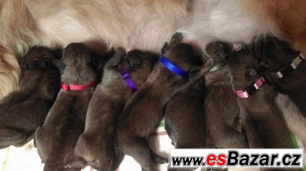 Leonberger - 4 holčičky a 1 kluka. Štěňátka se narodila 20. srpna a mají se čile k světu. Jsou bez PP po nádherných, čistokrevných rodičích s výbornou povahou hlavně k dětem. Oba rodiče možno vidět. Štěňátka budou k odběru ve druhé polovině října. Očkování a odčervení je samozřejmostí.