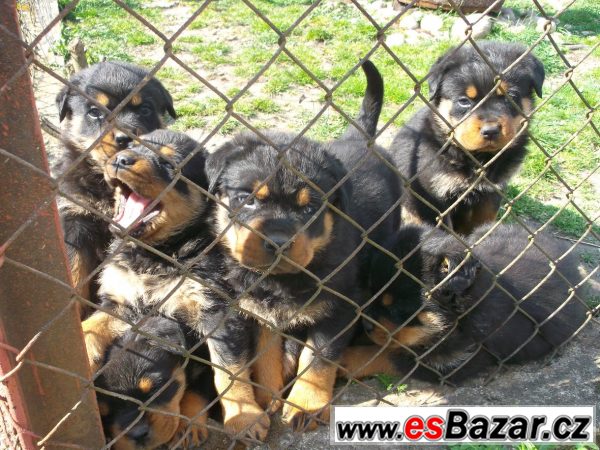 Rotvajler - k prodeji čistokrevná štěňata rotwajlera bez PP s ocásky po vynikajících rodičích. Štěňata budou odčervena a očkována. Předpokládaný odběr štěňat - polovina září.