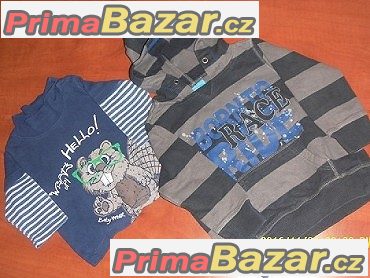 mikina modrá Hello vel. 74, cena 15,- Kč, mikina s pruhy a kapucí vel. 92, cena 30,- Kč.