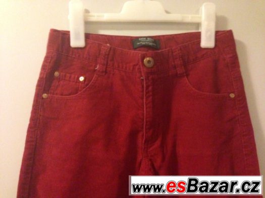 Prodám červené manšestrové kalhoty zn. Zara, klasického rovného střihu, ve velmi dobrém stavu, upravitelné v pase, velikost 152 (11-12 let), cena 170 Kč + poštovné. Monika.Papillier..xxxx...