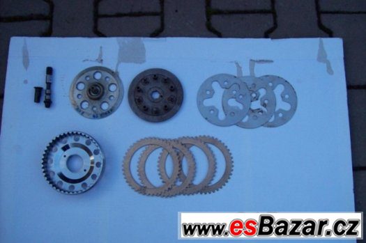 Prodam na CZ 250/513 spojkovy kos 1700 kc,sadu lamel 1200 kc,meziplechy 240 kc sada,unasec spojky 1200 kc,pritlacny talir 700 kc.Hridel vypinani spojky 450 kc,hrebinek pritlacneho talire 300 kc.Vse nove.Zaslu i jednotlive na dobirku postou.