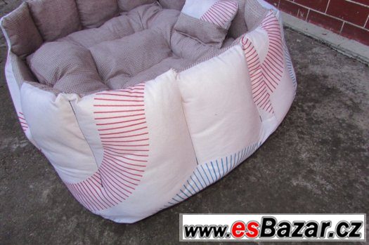 pelíšek pro psa rozměry vnější: 90x65x24 cm. Všechny naše pelíšky jsou řádně vycpány silnějším vatelínem(duté vlákno) , váha pelíšku okolo 3-6 kg !!!, který odolává slehnutí. Zvenku béžová látka se vzorem, vnitřní je kostkovaná barevná látka. Vnitřní polštář je z kostkované barevné látky. Všechny látky jsou vzájemně sladěny. Pratelný na 30°. Přední strana pelíšku je snížená, vhodné tedy i pro starší pejsky, kterým ulehčuje vstup do pelíšku. Pelíšek je velmi měkoučký a pohodlný. Sledujte i naše další inzeráty. Mohu zaslat